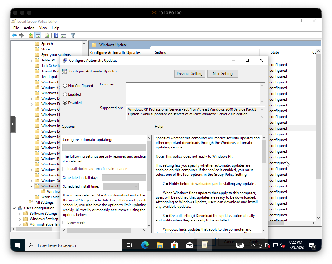 Computer Configuration > Administrative Templates > Windows Components > Windows Update - Double-click “Configure Automatic Updates”