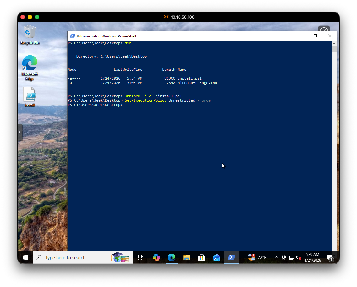 PS C:\Users\jeek\Desktop> Unblock-File .\install.ps1Enable Script Execution