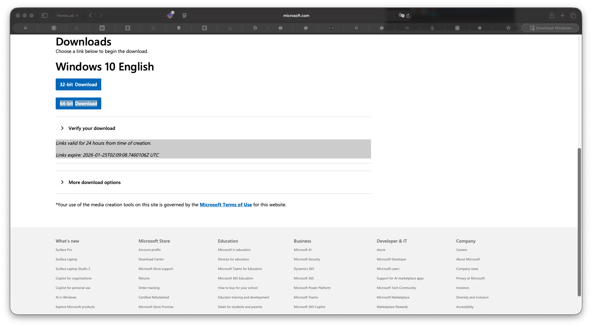 I didn’t have a Windows 10 ISO on hand, so I grabbed one from Microsoft’s official download page: