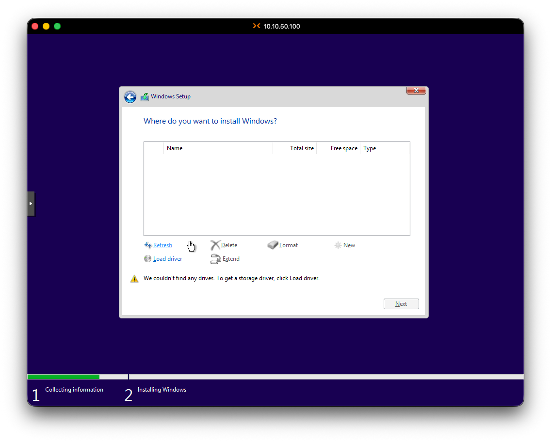 Here’s something that caught me off guard: after creating the VM and trying to install Windows, I couldn’t see my virtual disk. Turns out Proxmox uses VirtIO devices, and Windows doesn’t have those drivers built-in.
