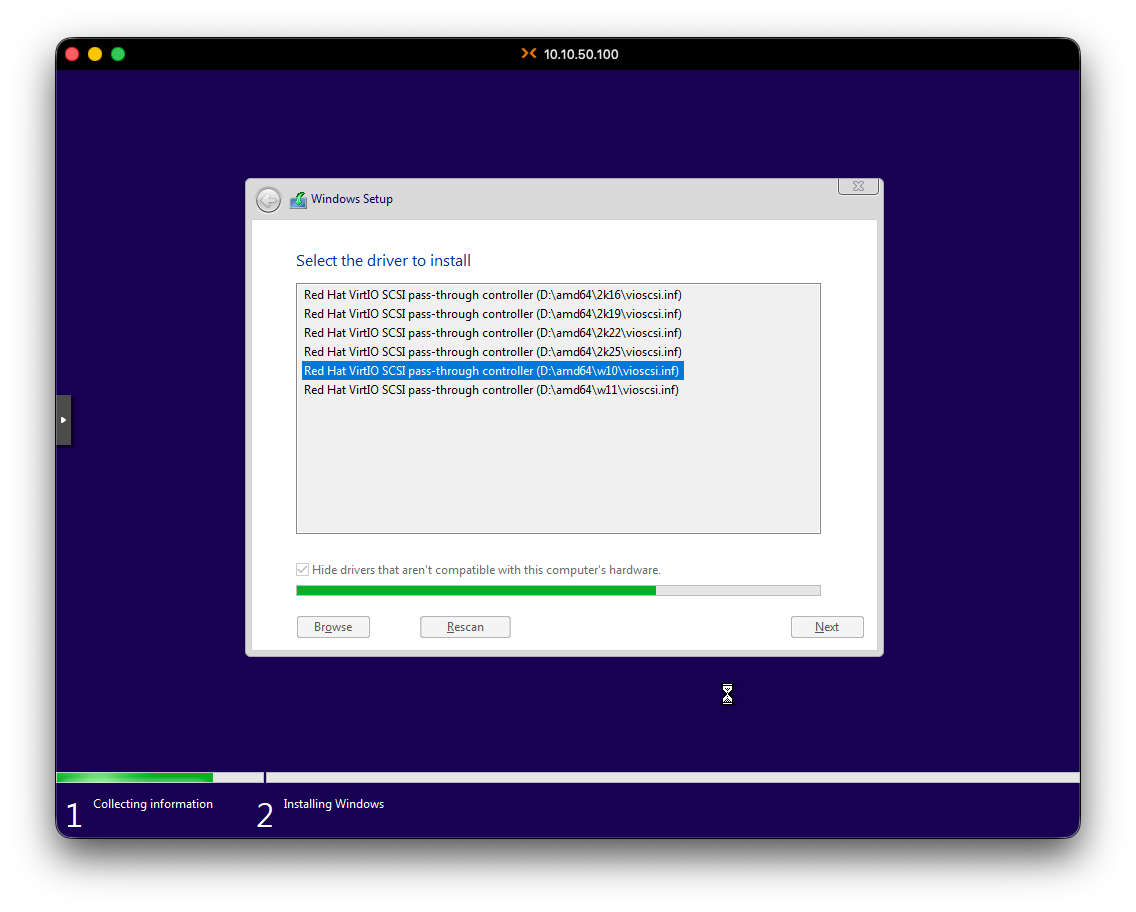 - Browse to the VirtIO ISO and select the Windows 10 folder